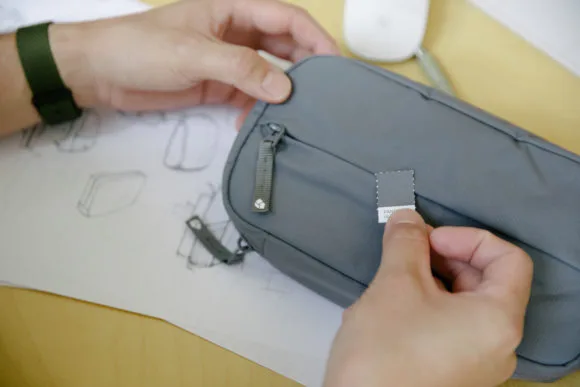 เคนจิ: จริงๆ พวกเราล้มตั้งแต่เริ่มเลยนะ ล้มเร็ว ล้มแรง ช่วงแรกๆ นั้นมันหนักมาก พวกเราทุ่มเทกันมากที่จะหาวัสดุให้ได้คุณภาพตามเป้า หลังจากที่ได้มาแล้วมันก็เป็นเรื่องของการเลือกออกแบบชิ้นงาน และทำไมถึงเลือกมัน ตอนแรกเราก็ทดลองทำแบบไว้หลากหลายมากๆ ซึ่งก็มีการเปลี่ยนไปเปลี่ยนมาหลายครั้งอยู่ จนเราได้บทสรุปสุดท้ายเป็นเจ้า 3 ชิ้นนี้ คือ sleeve สำหรับแล็ป กระเป๋าเอนกประสงค์ใบเล็ก และเจ้าเป้ทรงคลาสสิคใบนี้ รวมเป็น 1 คอลเลคชั่นที่เราภาคภูมิใจว่ามาจากการเปลี่ยนรูปของขยะพลาสติกที่เราช่วยเคลียร์ออกจากมหาสมุทรจริงๆ