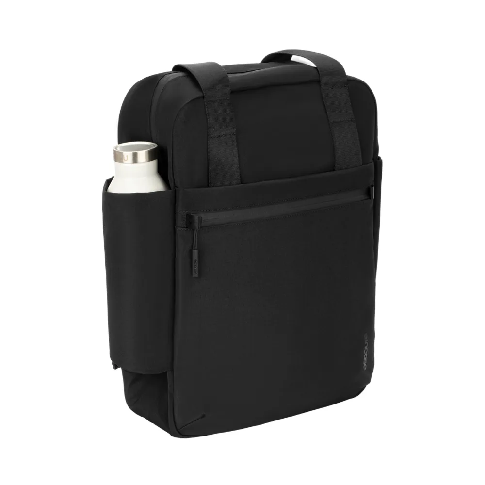 • Stay on the move with a side water bottle compartment that doesn’t add bulk as well as a zippered luggage pass through.